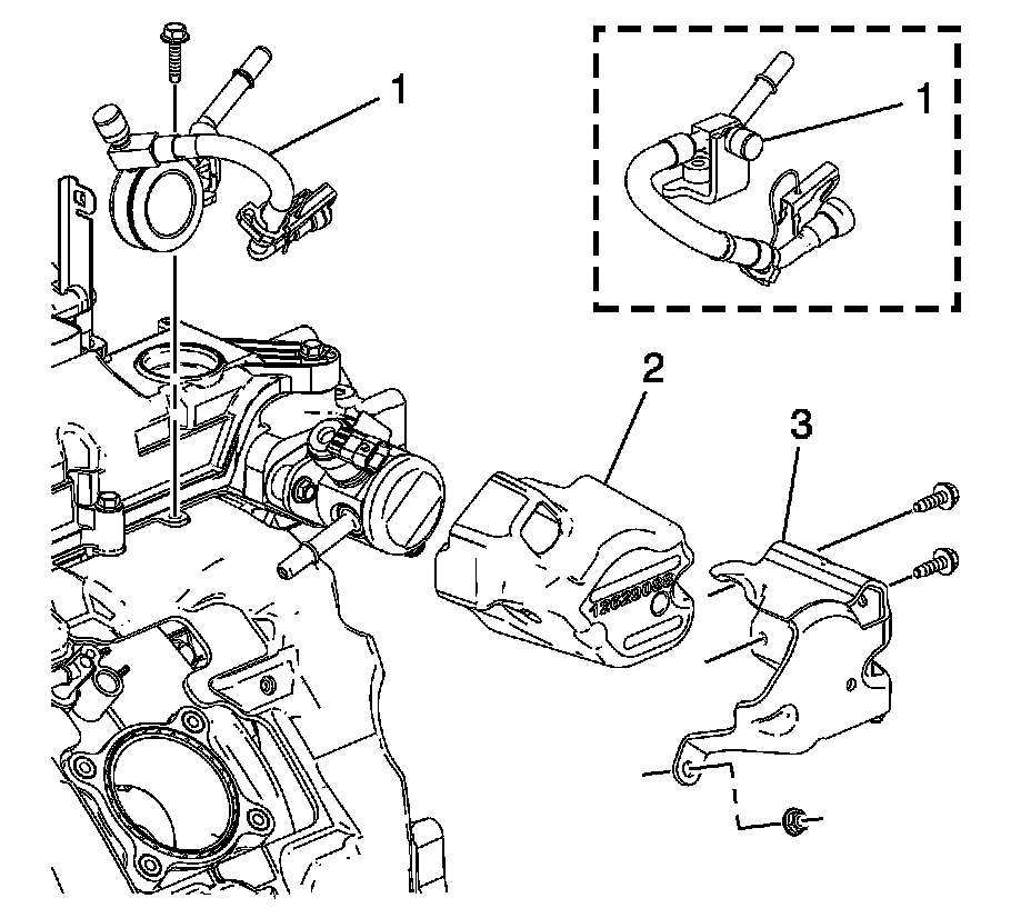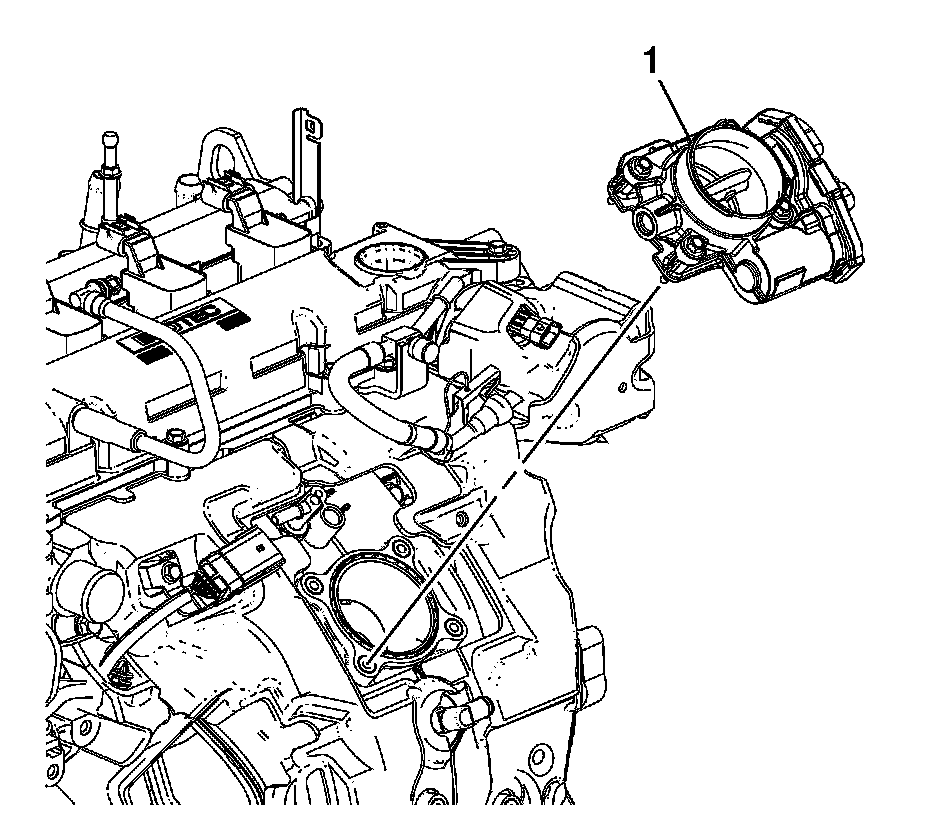 7. Remove the throttle body (1). Refer to Throttle Body Assembly Replacement Removal and Replacement.