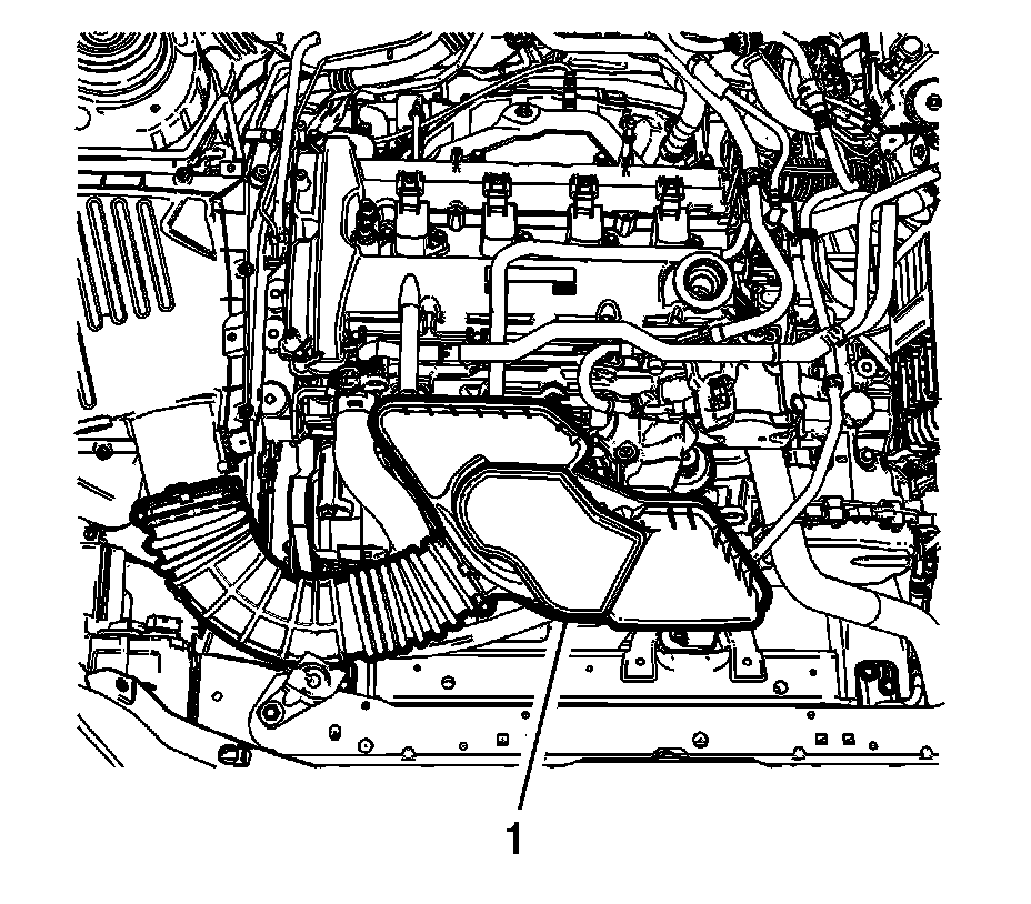 7. Remove the air cleaner outlet duct assembly (1). Refer to Air Cleaner Outlet Duct Replacement Service and Repair.