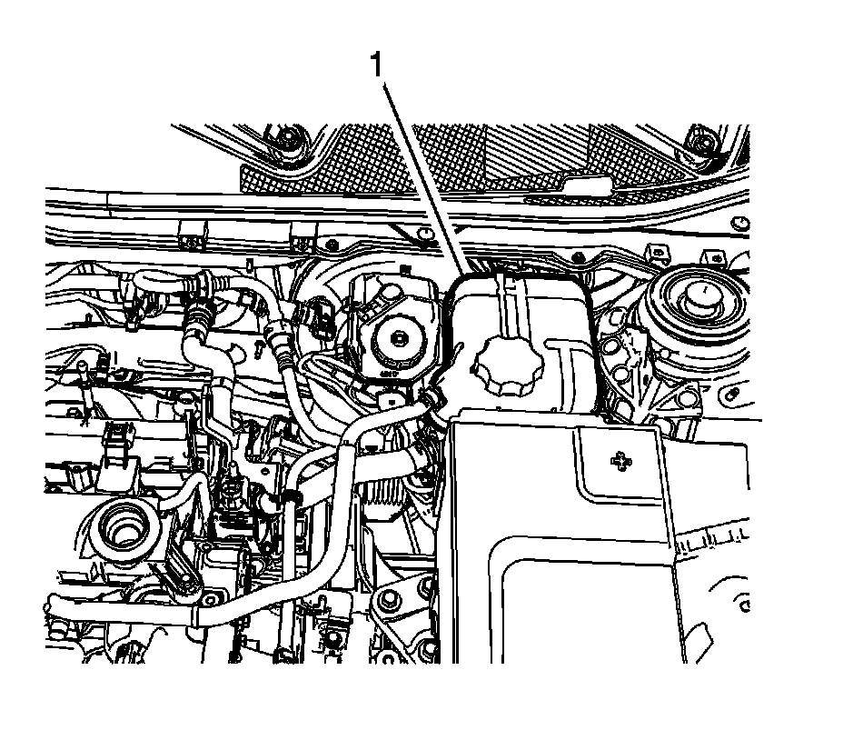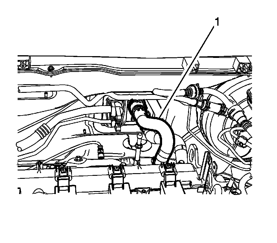 13. Remove the radiator surge tank inlet hose (1). Refer to Radiator Surge Tank Inlet Hose Replacement (LEA) Radiator Surge Tank Inlet Hose Replacement (LEA).