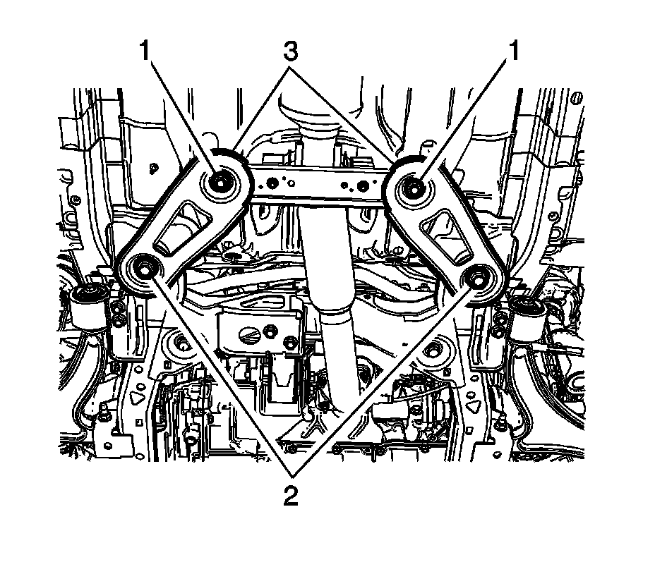 14. Install the frame reinforcements bracket (3) then tighten the bolts (1) and (2) to 42 Nm (31 lb ft).