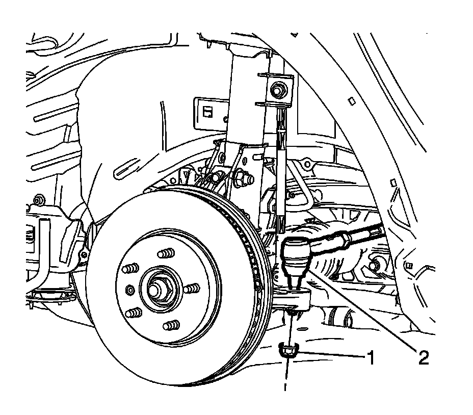33. Remove the steering linkage outer tie rod nut (1) and tie rod (2). Refer to Steering Linkage Outer Tie Rod Replacement Steering Linkage Outer Tie Rod Replacement.