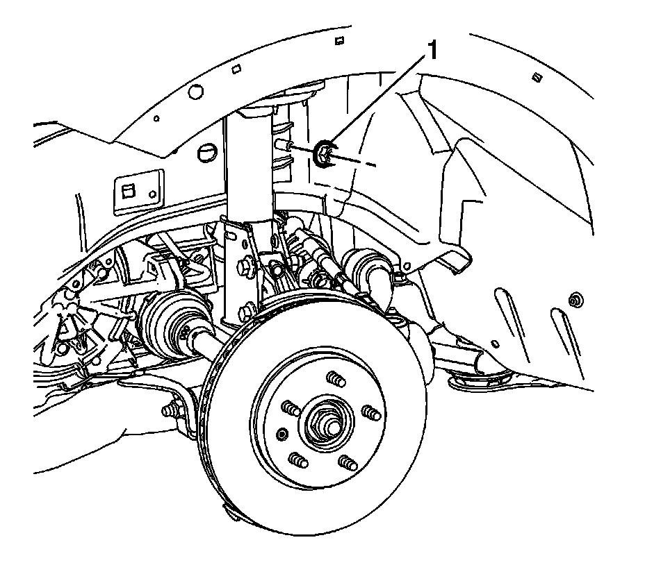 34. Remove the nut (1) and separate the stabilizer link from the strut assembly. Refer to Stabilizer Shaft Link Replacement Front Suspension.