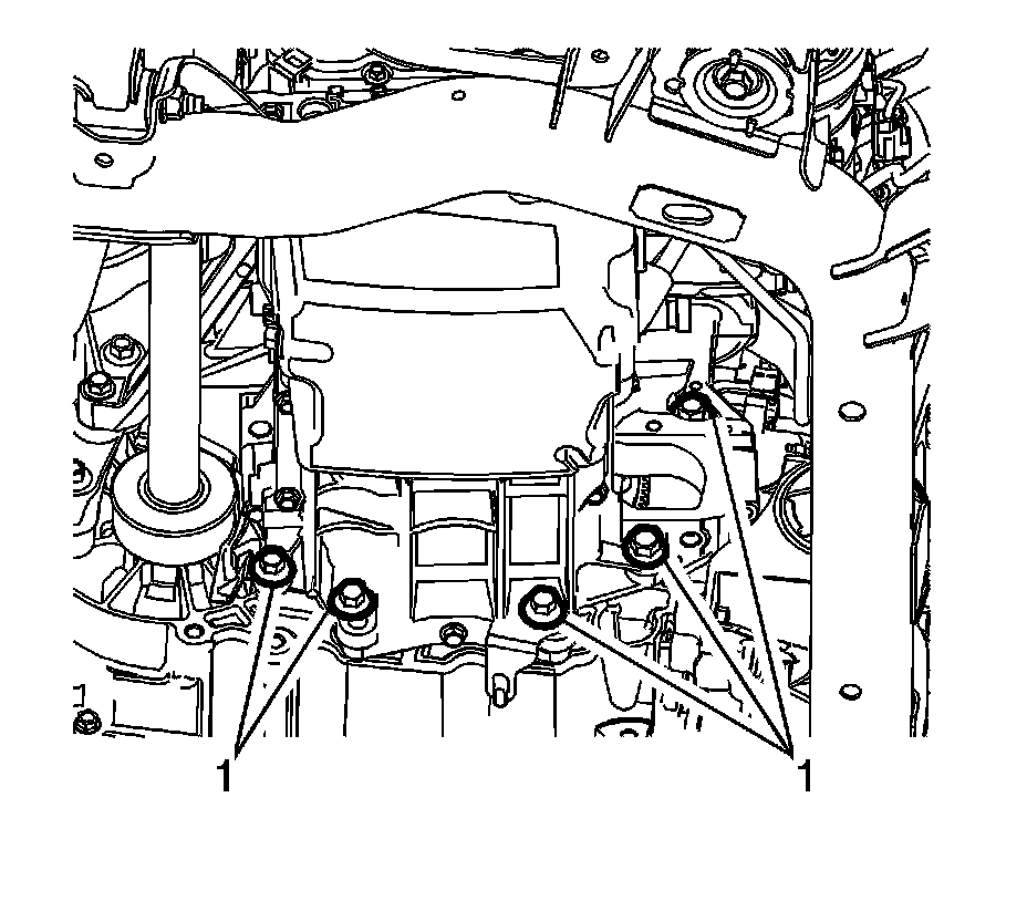 4. Install the upper transmission bolts (1) and tighten to 75 Nm (55 lb ft).