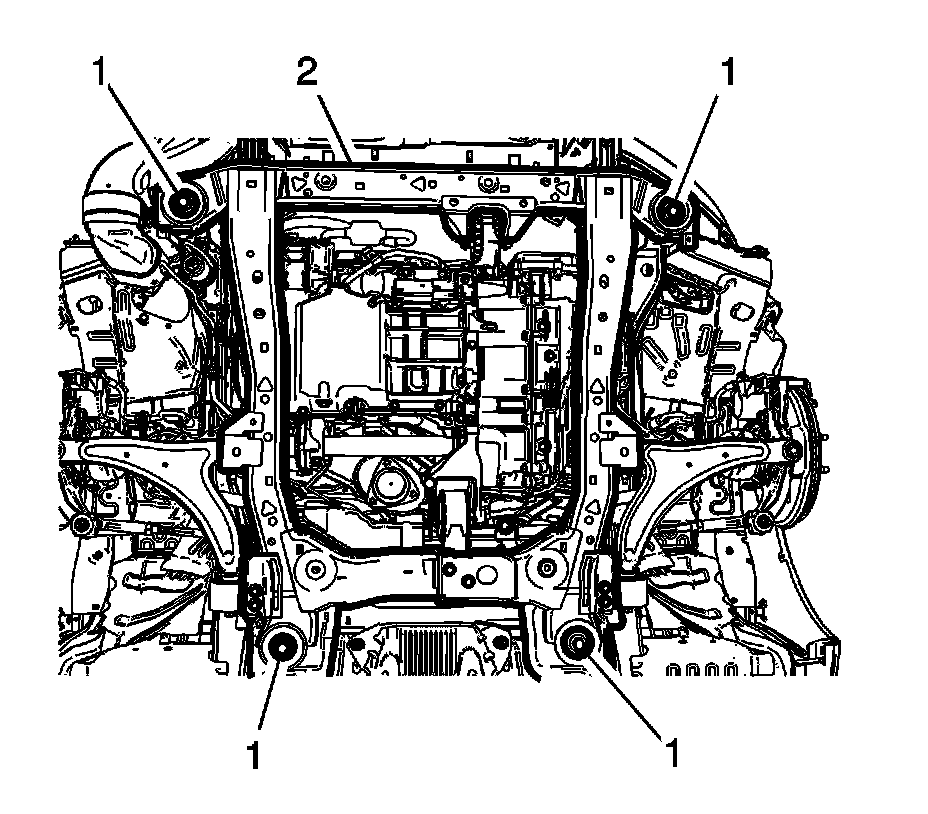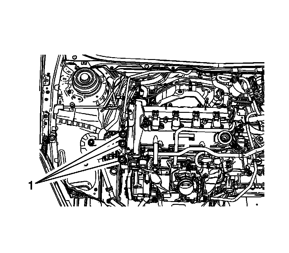 8. Install the NEW right side engine mount bolts (1) and tighten to 62 Nm (46 lb ft).