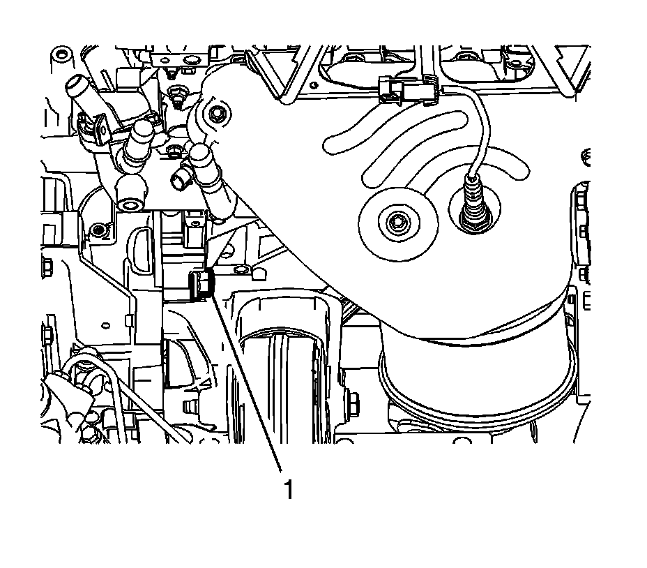 24. Install the radiator inlet hose (1). Refer to Radiator Inlet Hose Replacement (LUK) Radiator Inlet Hose Replacement (LUK)Radiator Inlet Hose Replacement (LHU) Radiator Inlet Hose Replacement (LHU)Radiator Inlet Hose Replacement (LEA) Radiator Inlet Hose Replacement (LEA).