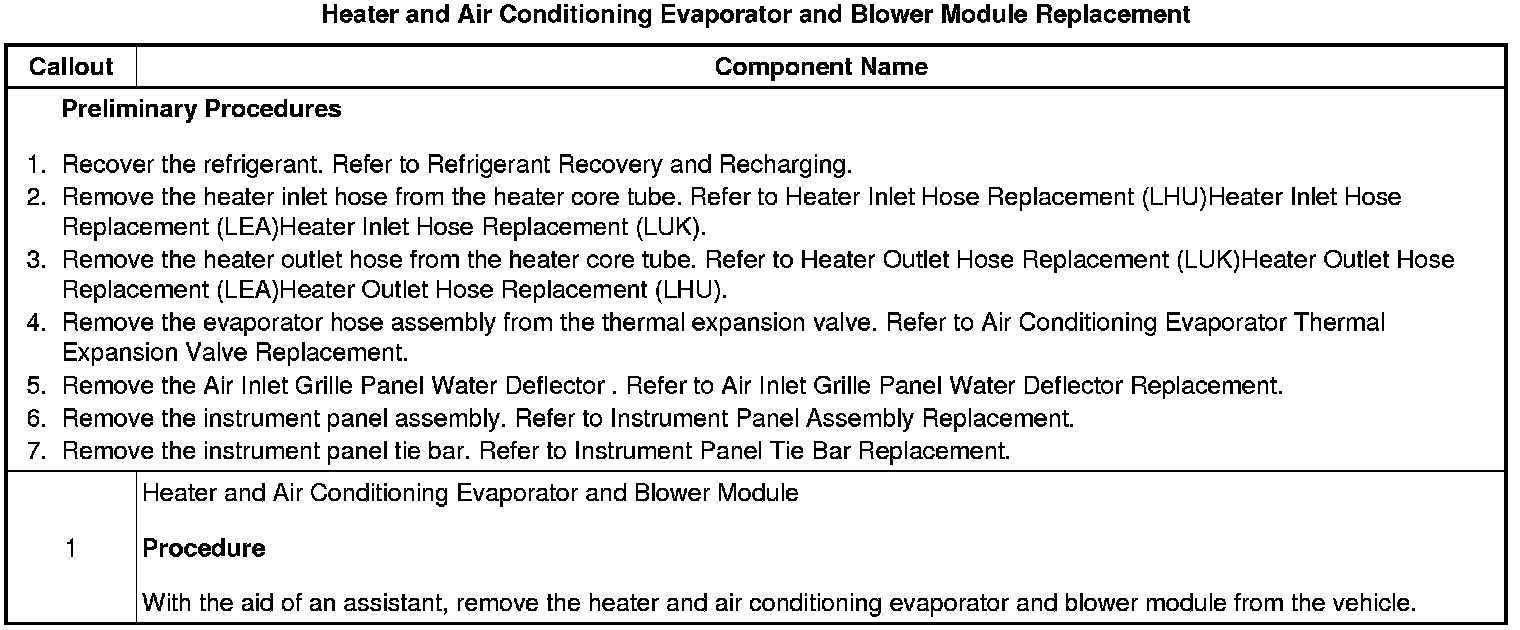 Heater and Air Conditioning Evaporator and Blower Module Replacement