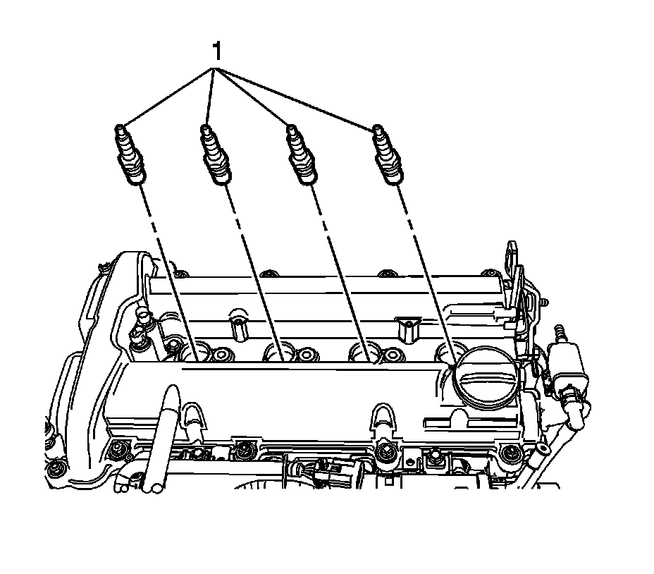 2. Remove the spark plugs (1) using a 5/8 inch spark plug socket.