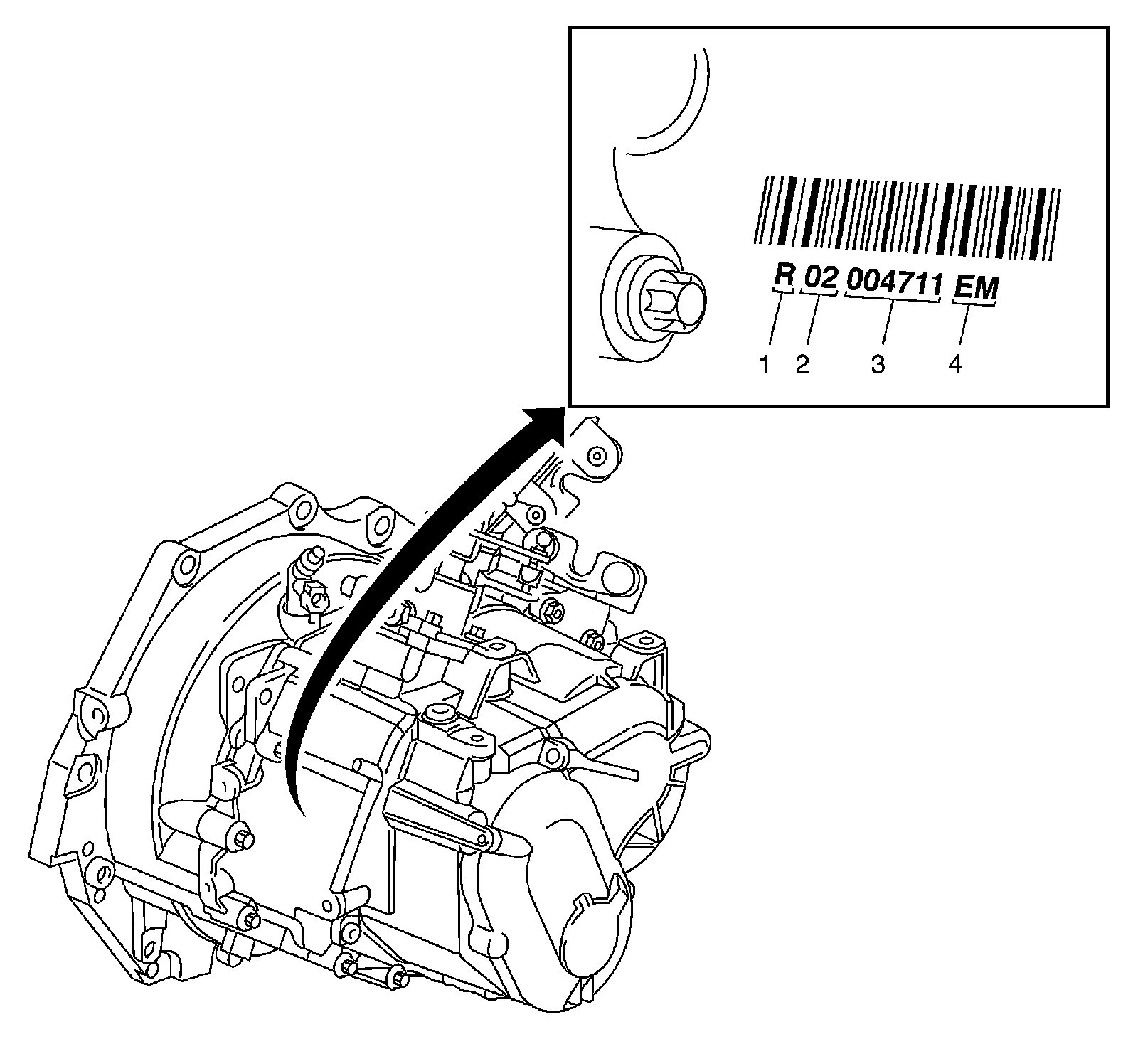 The code for the F40-6 transmission is located at the front of the transmission housing.