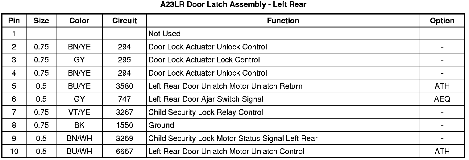 A23LR Door Latch Assembly - Left Rear