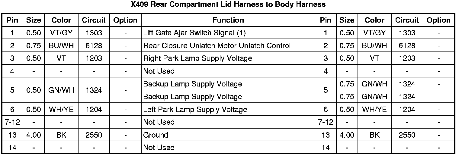 X409 Rear Compartment Lid Harness to Body Harness