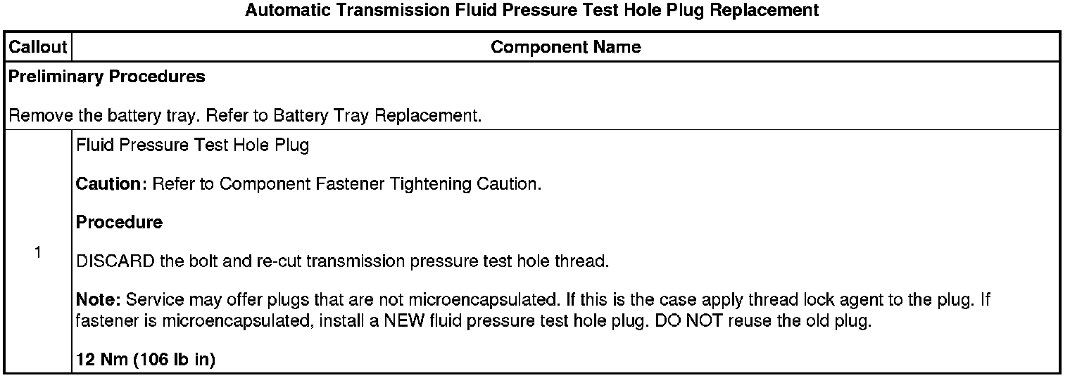 Automatic Transmission Fluid Pressure Test Hole Plug Replacement