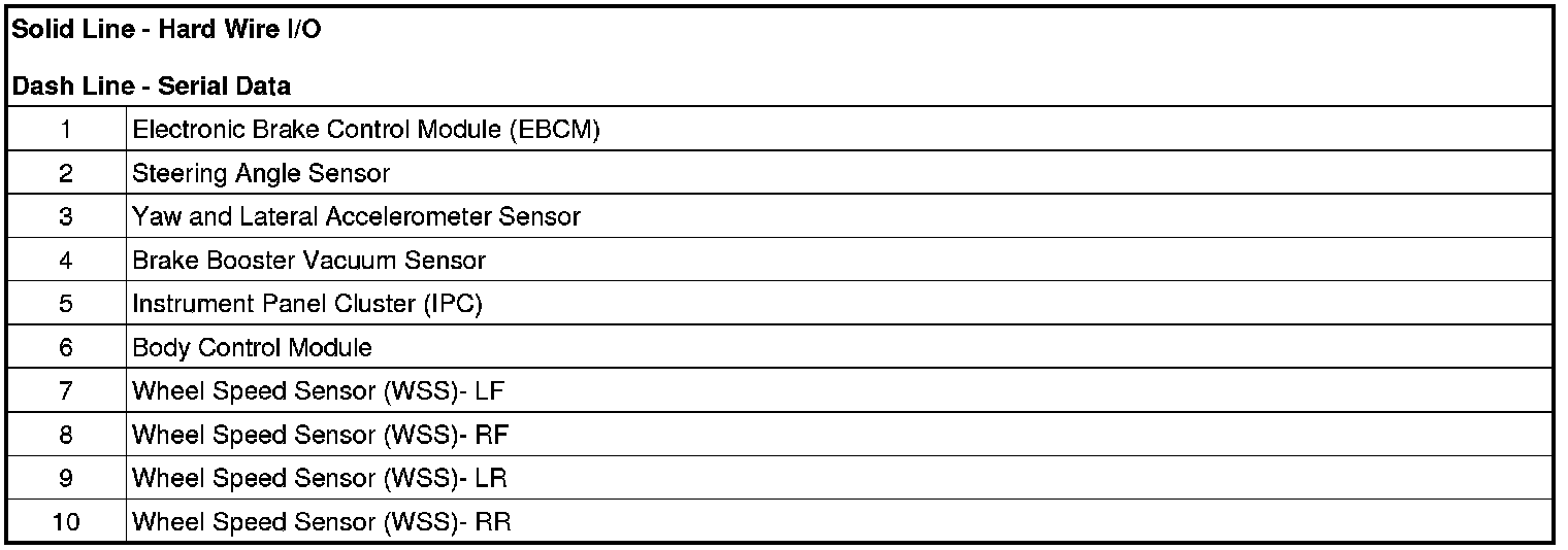 * Yaw/lateral accelerometer sensor--The yaw rate, lateral acceleration and longitudinal acceleration sensors are combined into one yaw/lateral accelerometer sensor, external to the EBCM. The EBCM receives serial data message inputs from the yaw rate, lateral acceleration and longitudinal acceleration sensor and activates stability control and hill start assist function depending on multi-axis acceleration sensor input