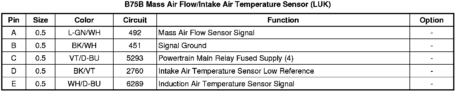 B75B Mass Air Flow/Intake Air Temperature Sensor (LUK)