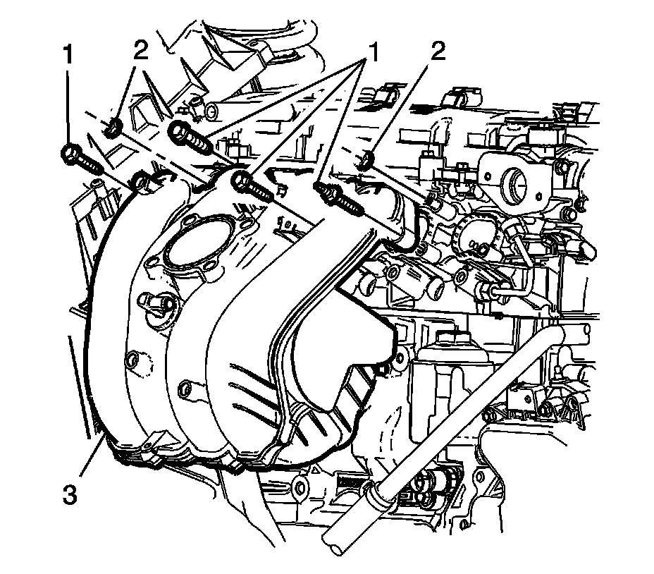 Tighten the bolts/nuts (1 and 2) to 10 Nm (89 lb in).