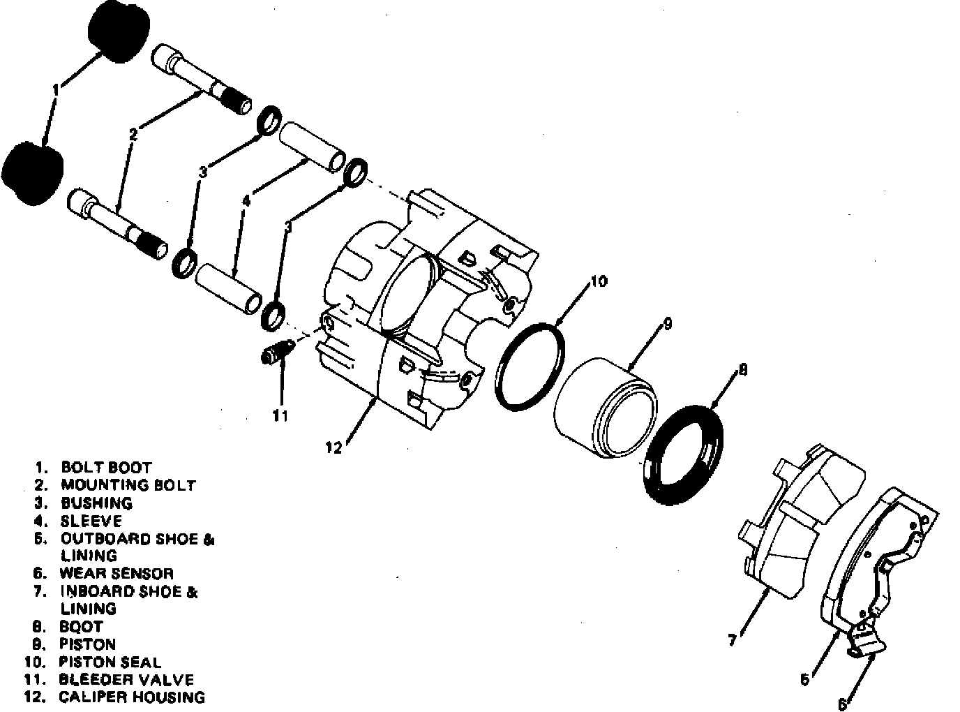 Fig. 3 Delco-Moraine 3200 series caliper exploded view.: