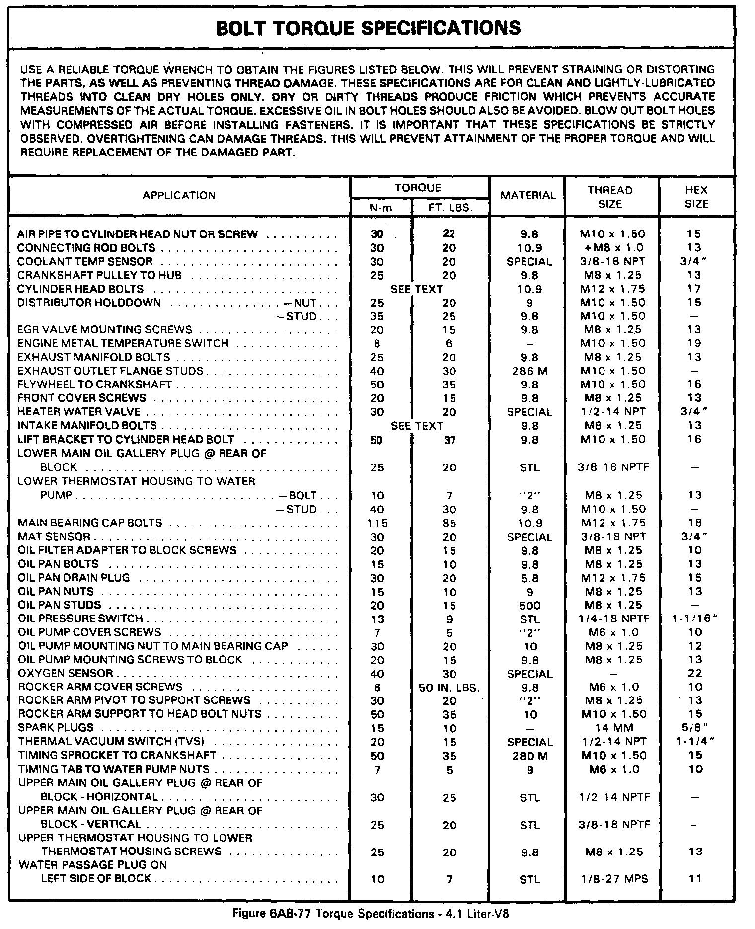 Bolt Torque Specifications: