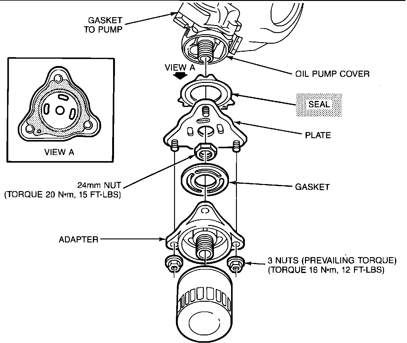 Do not overtorque nut. Excessive torque will distort plate and may cause an oil leak.