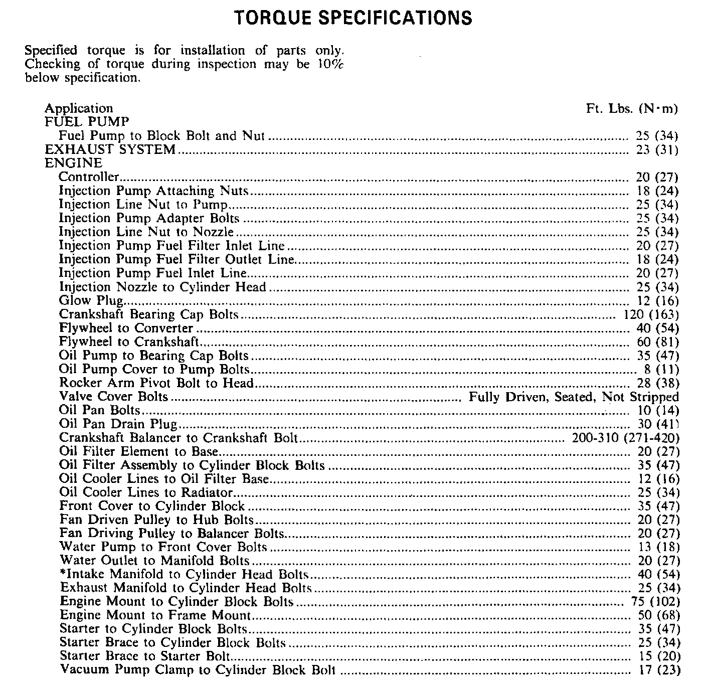 Continued Torque & Engine Specifications: