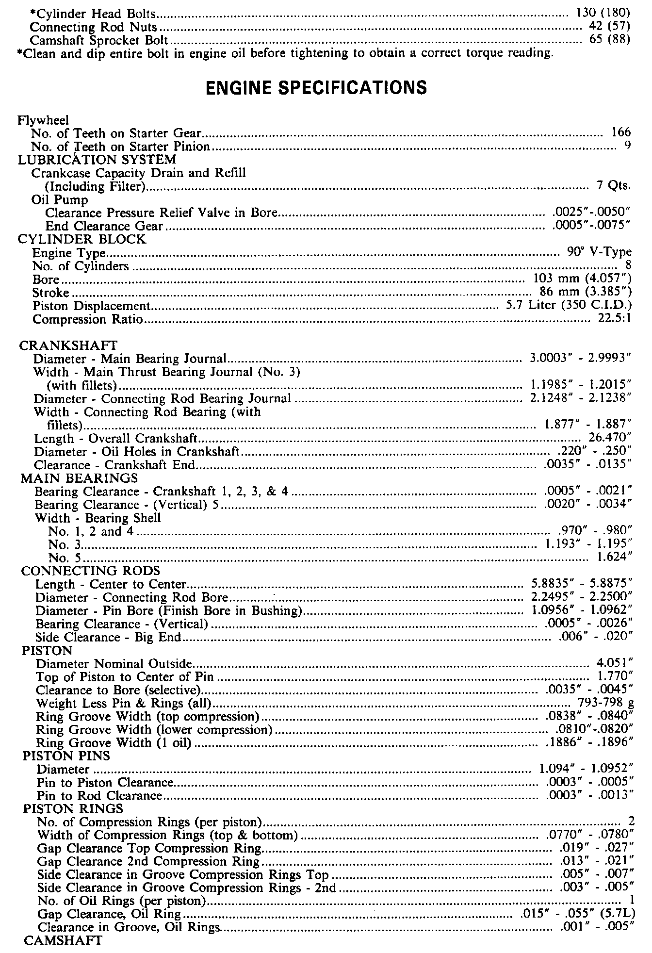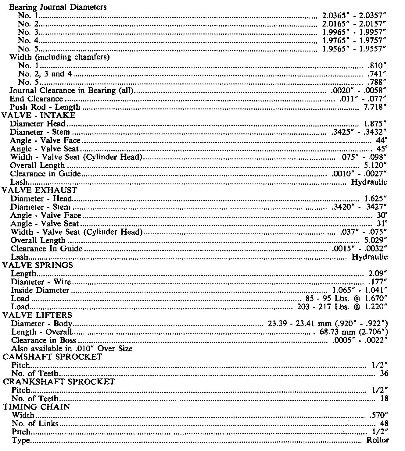 Continued Engine Specifications: