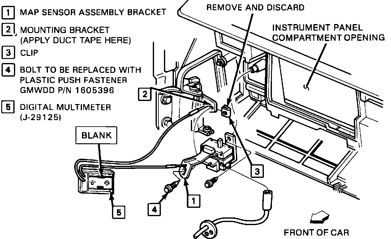 In order to correct this condition, the MAP sensor bracket must be electrically isolated from the I.P. mounting bracket. The following procedure should be followed when diagnosing and correcting this condition.