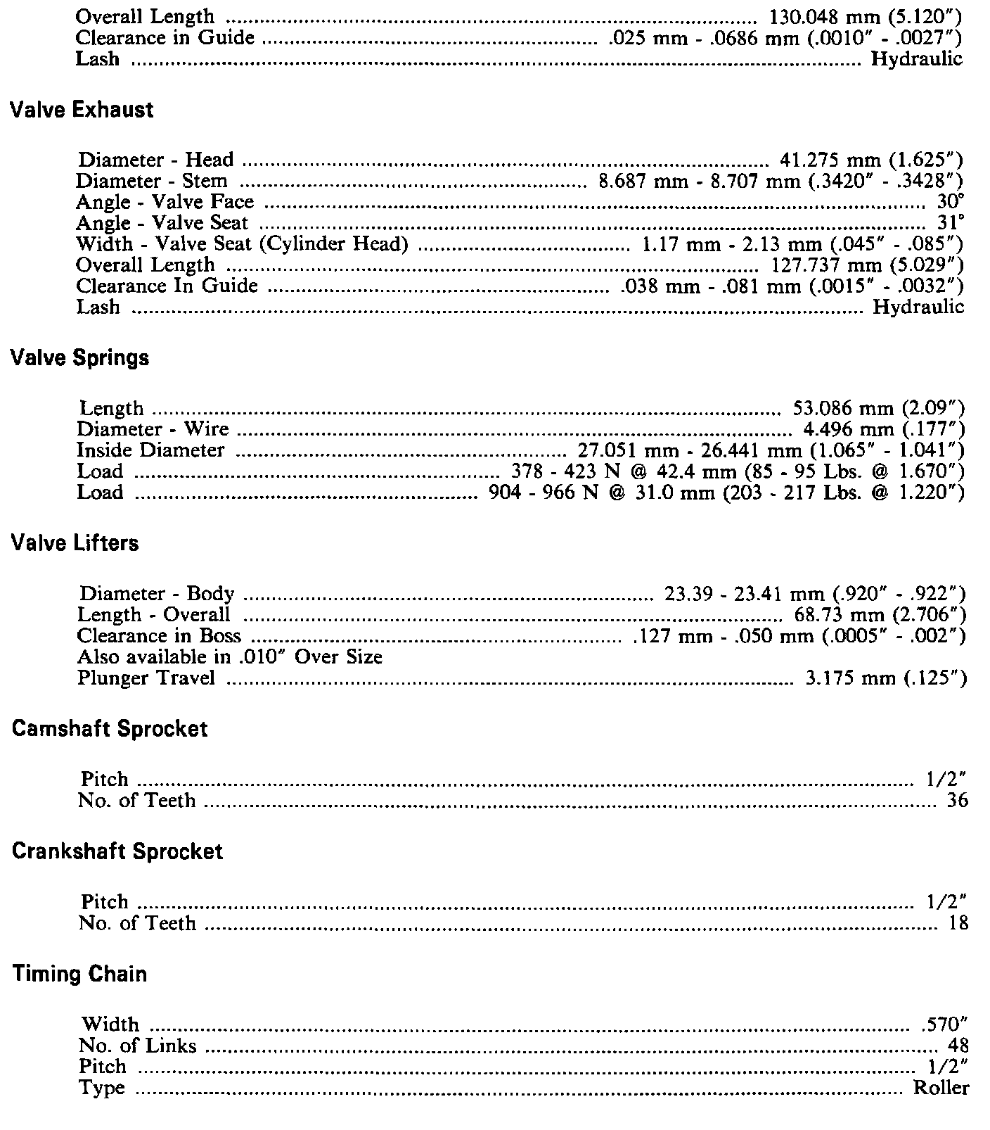 Engine Specifications: