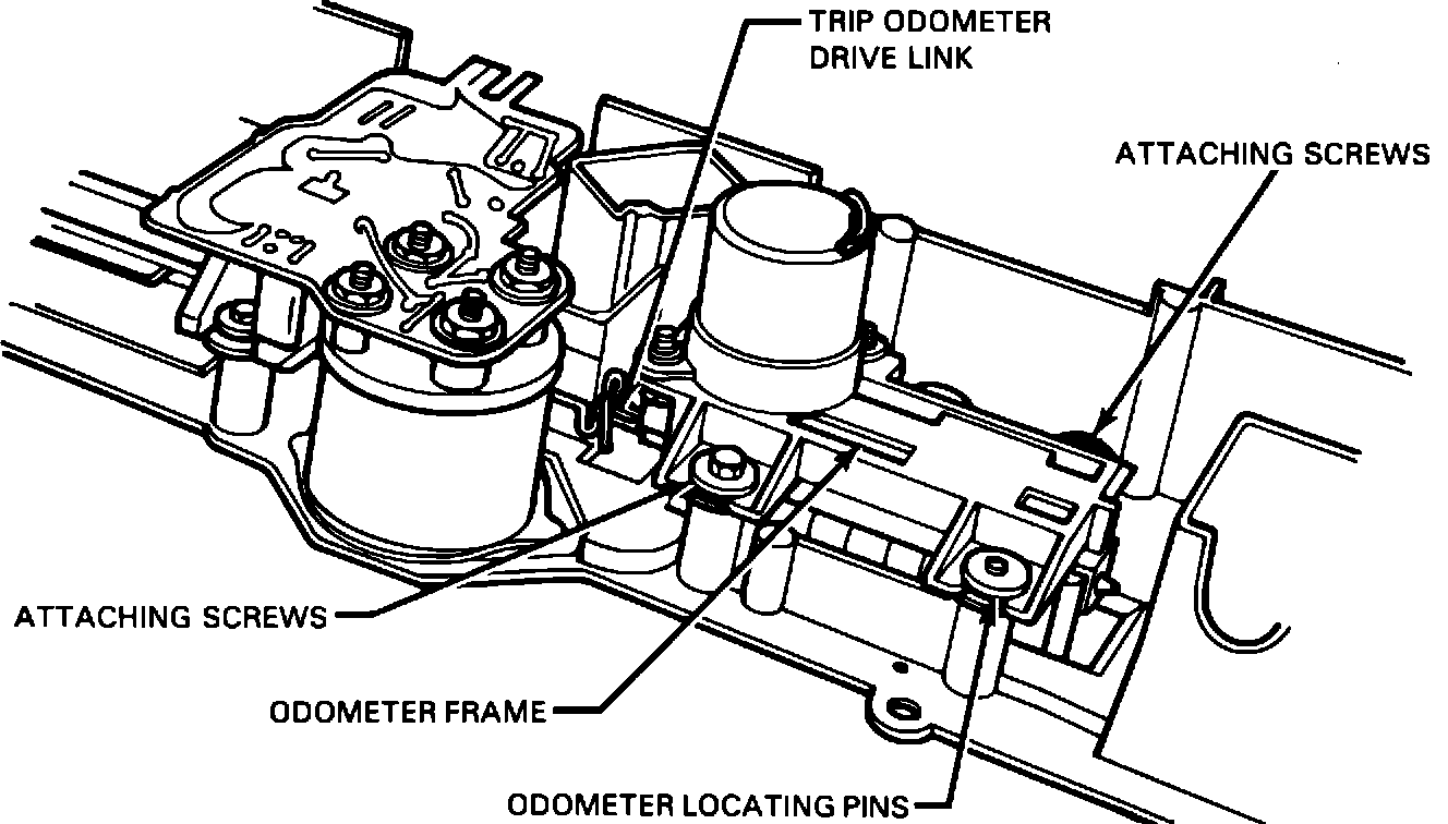 7. Turn the component board over and remove the two screws attaching the odometer frame to the housing. See Figure 1.