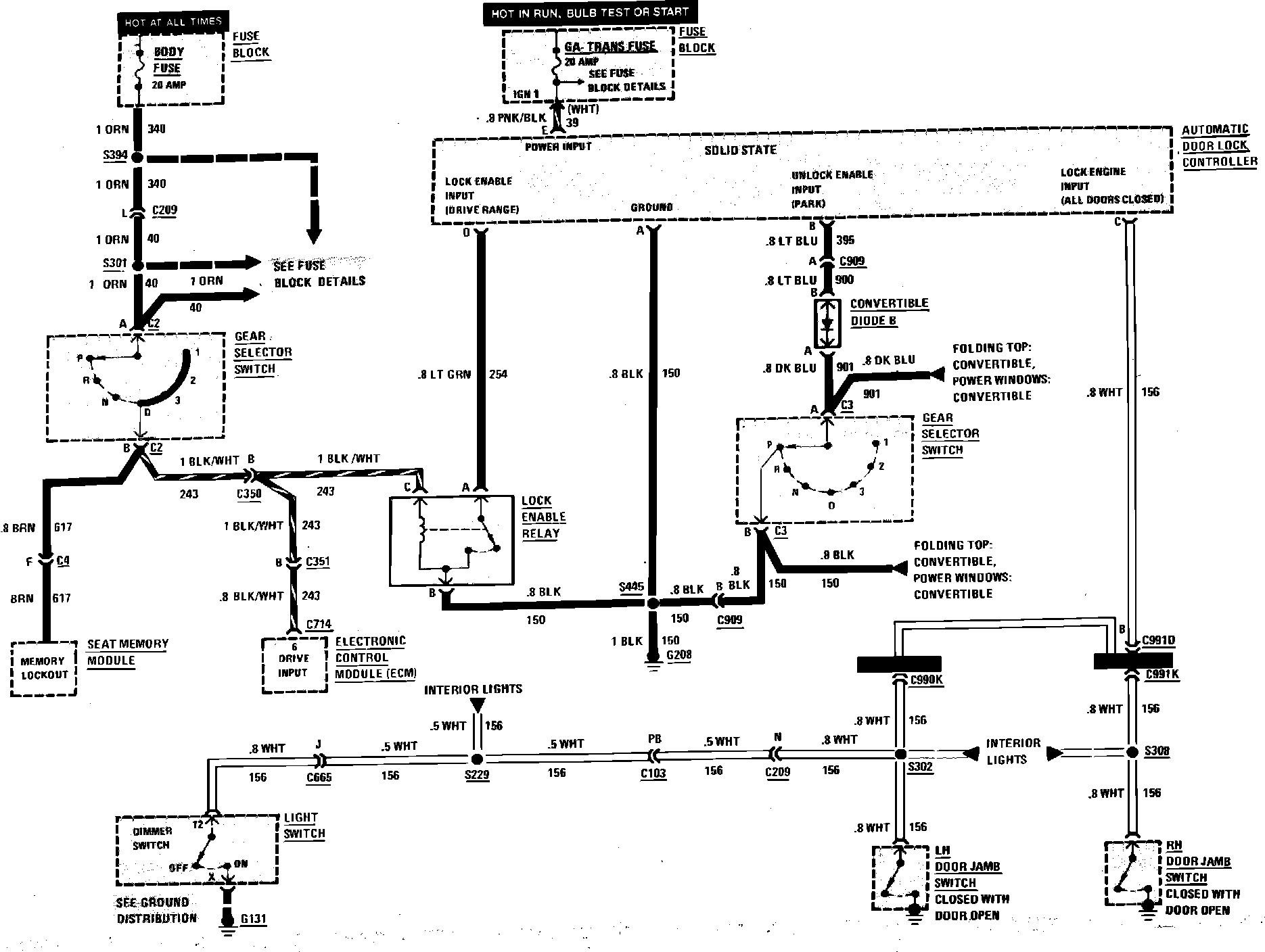 Automatic Door Lock Wiring Circuit (Convertible):
