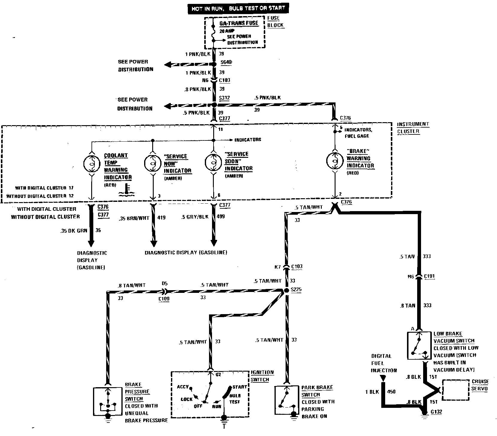 Brake Warning System & Indicators Wiring Circuit: