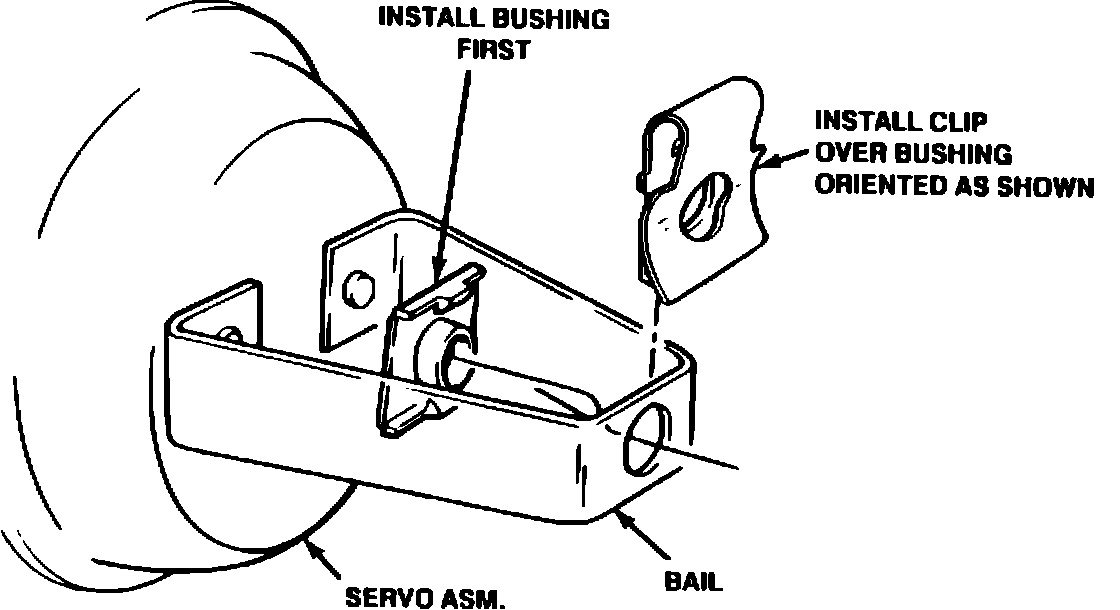 Pinch the bushing flange with a pair of pliers and remove the bushing from the bail. The bushing may not be in the bail hole as originally installed; it may be free to move on the Servo Rod Assembly. Remove and discard the old bushing.