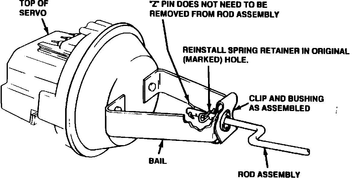 If the Servo Rod Assembly is missing the "Z" pin, install a second Spring Retainer (provided in Bushing Kit) in the end hole normally occupied by the "Z" pin.