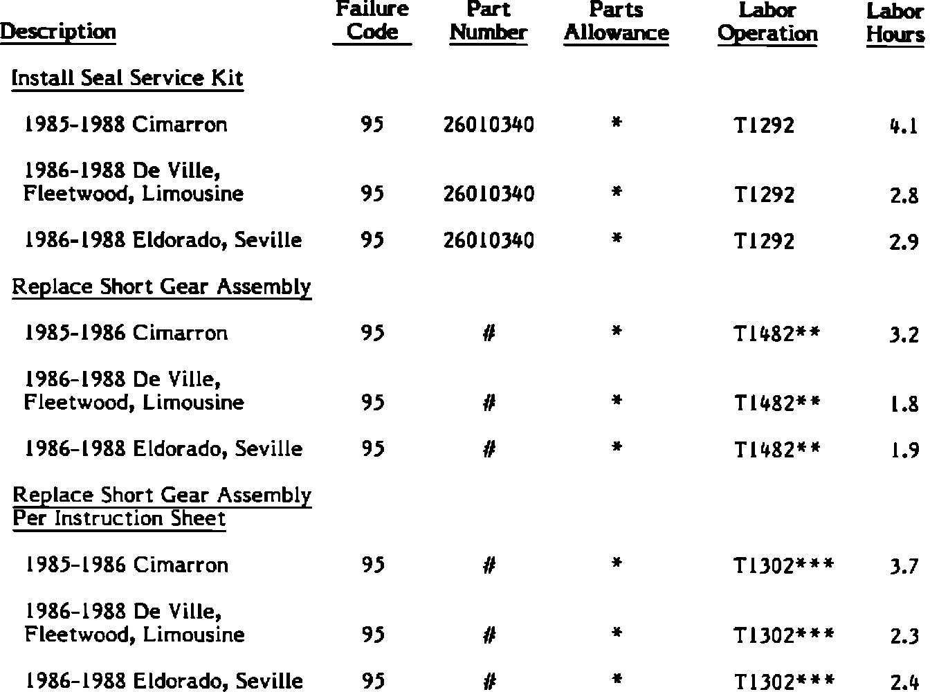 All 1985-1987 Cimarron All 1986-1987 De Ville, Fleetwood and Limousine All 1986-1987 Eldorado and Seville