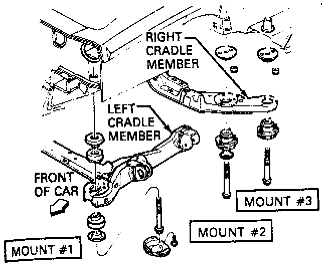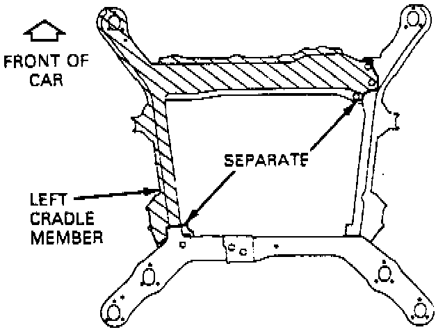 22. Remove No. 1 insulator bolt and separate right front corner of cradle assembly, Fig. 6, then remove left cradle section.