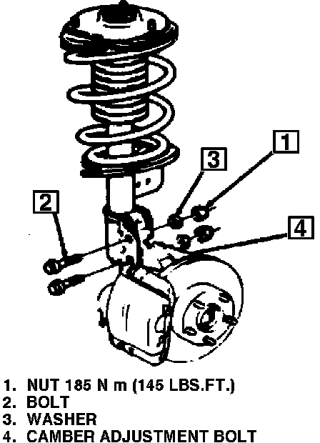 3. Torque strut to knuckle nuts to 140 ft. lbs.