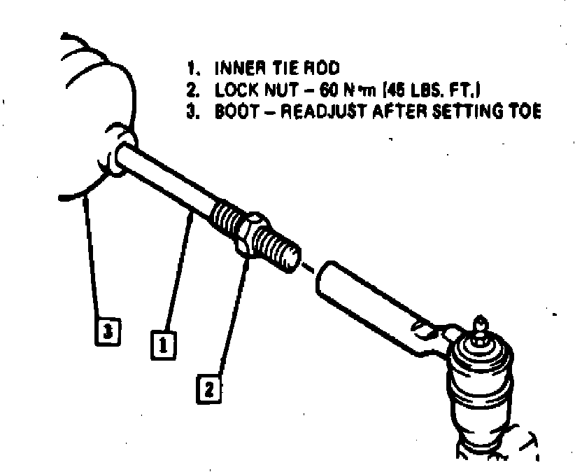 2. Adjust toe by turning inner tie rods.