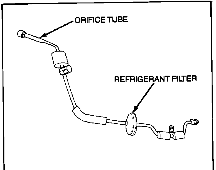 A. On 1985-1987 vehicles disconnect the liquid line connection at the orifice tube. On 1988 vehicles disconnect liquid line from evaporator fitting. Remove orifice tube and inspect for debris; and if necessary, clean or replace it. If in the unlikely event a screen on the orifice tube is ripped, the evaporator core, and orifice tube must be replaced. Discard old O-ring and install new GM replacement neoprene O-ring, P/N 3094217.