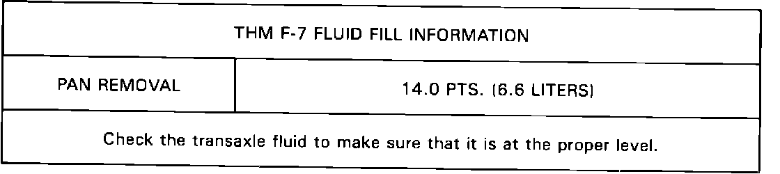 Any THM F-7 service procedure that cannot be performed on-car will require a SRTA replacement. Cadillac Serviceman Bulletin T-87-80 provides a specific list of components that are considered on-car serviceable for 1987 and 1988 models. The upcoming 1989 model New Product Information Manual will provide similar information plus diagnostics information unique to the 1989 model.
