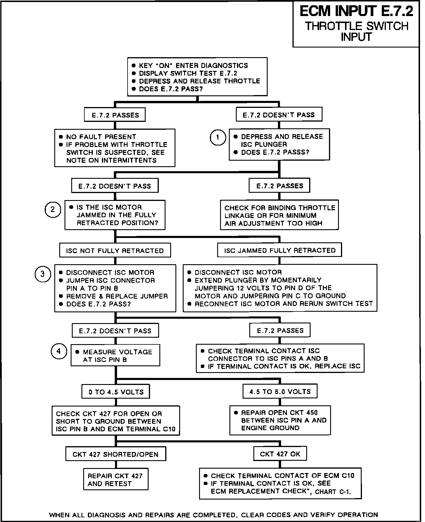 1. With ISC plunger depressed and released, either way should allow the switch test to pass. If E.7.2 doesn't pass, check for ISC circuit problems.