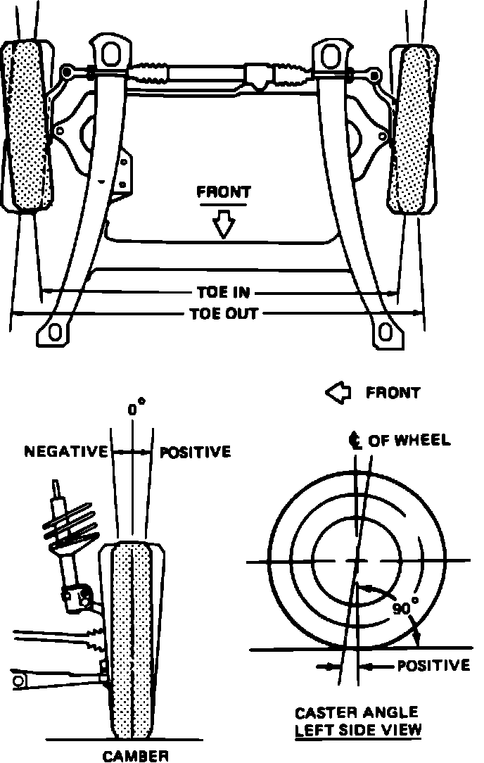 If adjustments are necessary, they must be made in order; caster first, camber second and toe third. Jounce front and rear bumpers three times to normalize suspension prior to measuring angles.