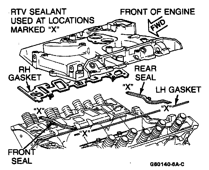 2. RTV 1052366 to four corners where end seals will meet side gaskets