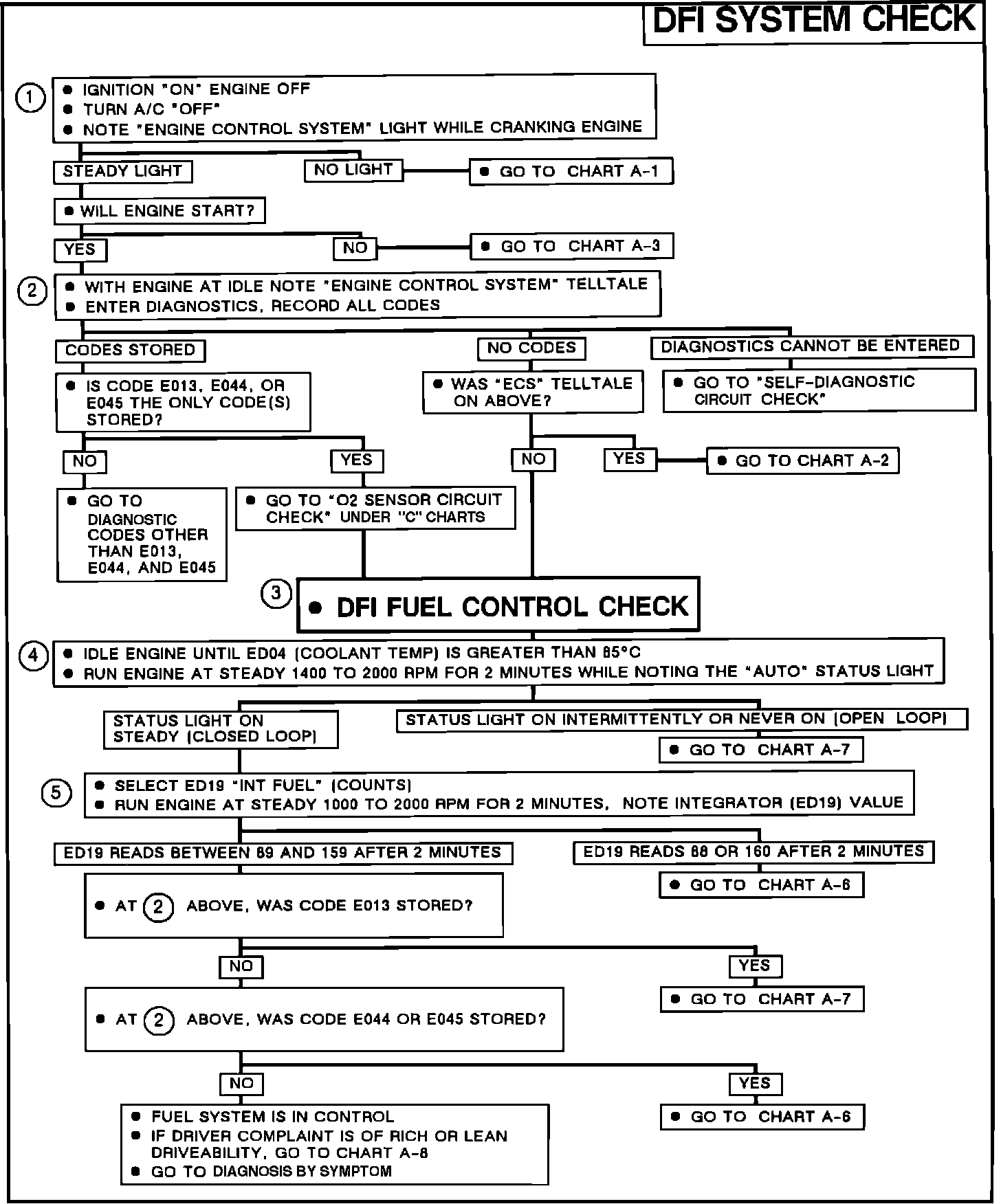 The DFI System Check is an organized approach for identifying a problem caused by the Digital Fuel Injection System. Driver comments normally fall into one of the following areas: