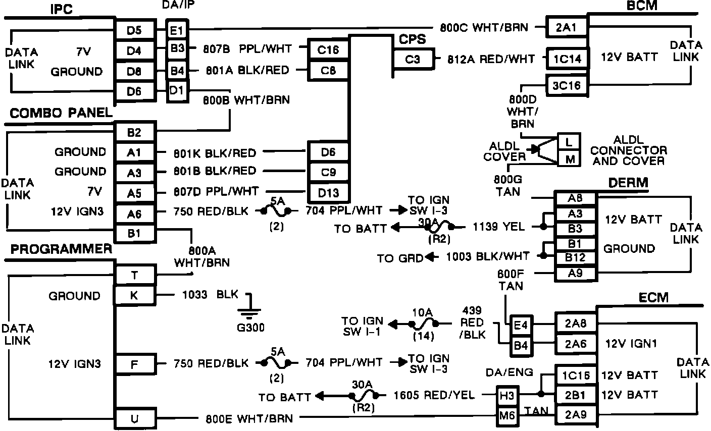 The use of the communication line allows for the separate controlers to share information. Examples of this may be gage information sent from the PCM to the Instrument Panel Controller (IPC), A/C compressor requests sent from the Climate Control Panel (CCP) to the PCM, or Climate Control information sent between the IPC and CCP. This shared information architecture also provides for the on-board self diagnostic capabilities of the computer control systems.