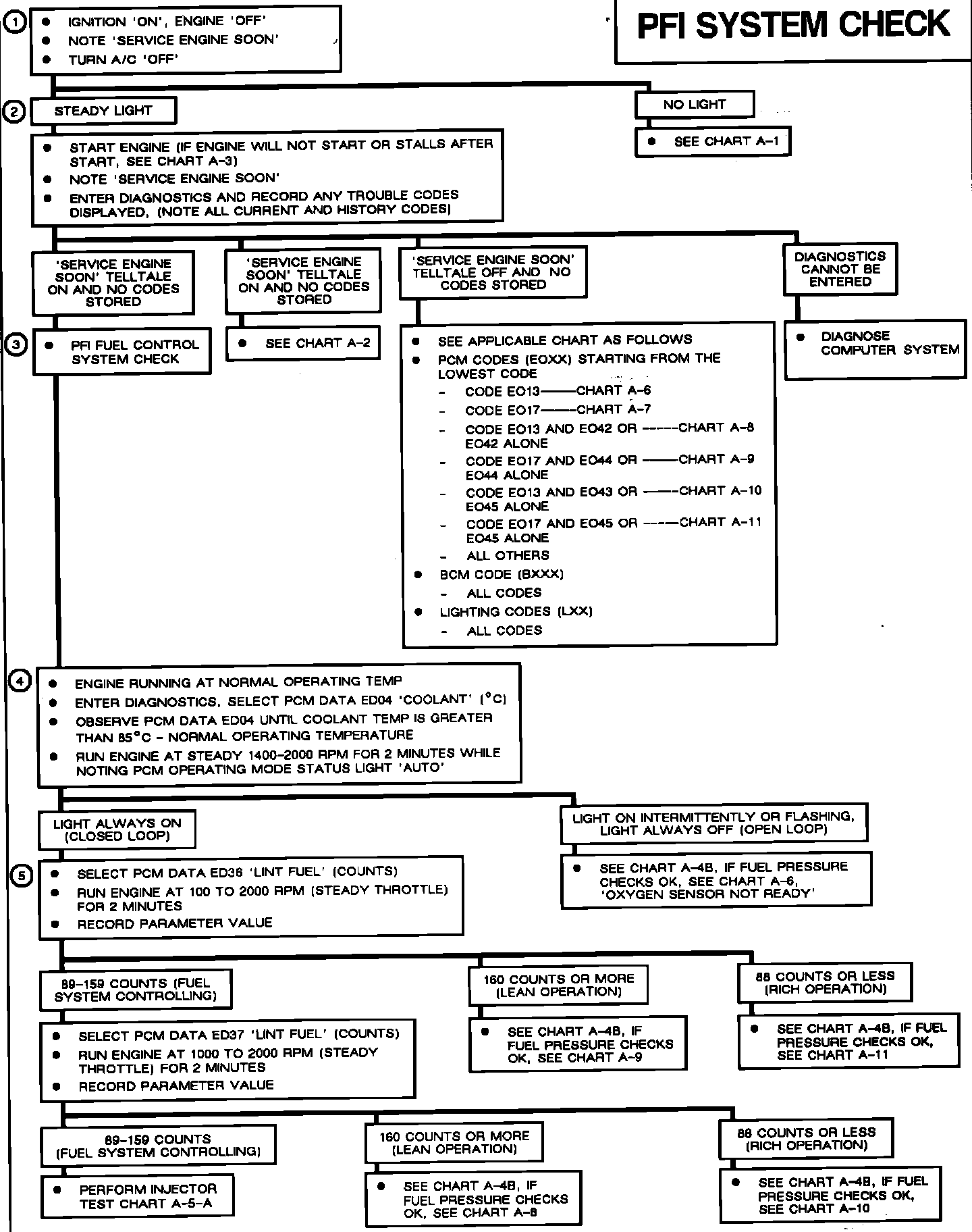 The PFI System Check is an organized approach for identifying a problem caused by the Digital Fuel Injection System. Driver comments normally fall into one of the following areas: