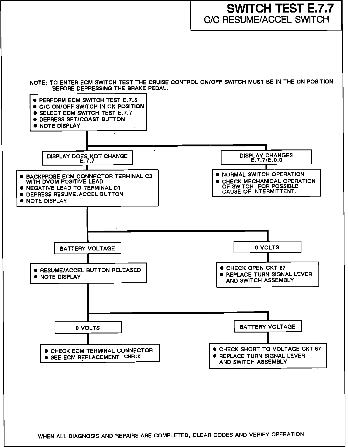 Switch Test E.7.7 - Cruise Control Resume/Accel Switch