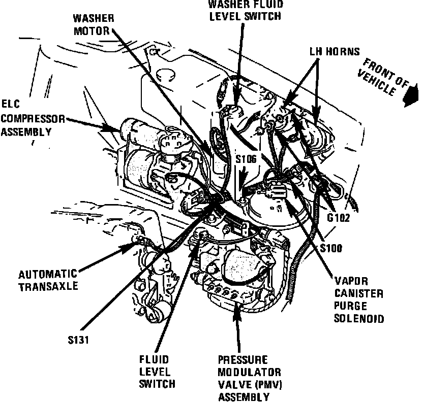 Lower LH Side Of Engine Compartment, Below Vapor Canister