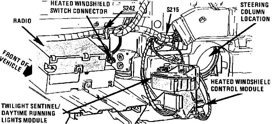 Behind Center Of I/P, Right Of Steering Column