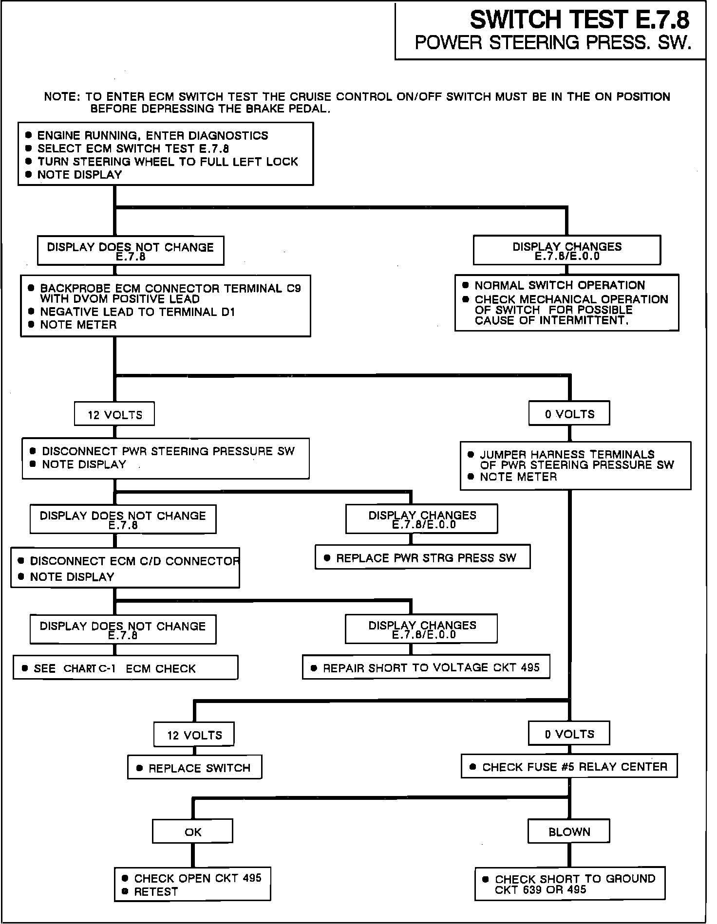 This test detects the open and close of the power steering switch located on the steering gear at terminal C9 of the PCM/ECM.