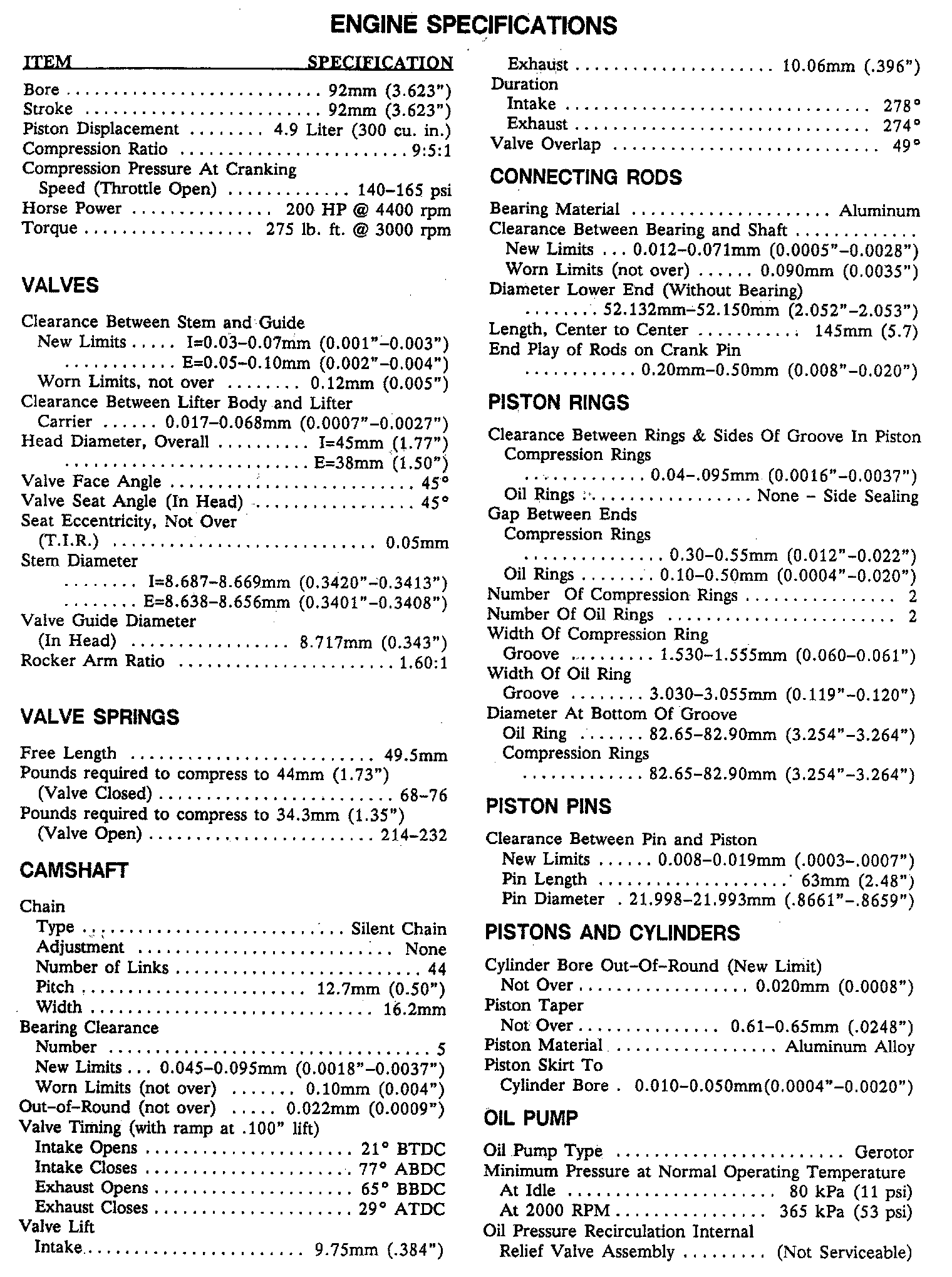 Dimension & Clearance Specifications - Engine