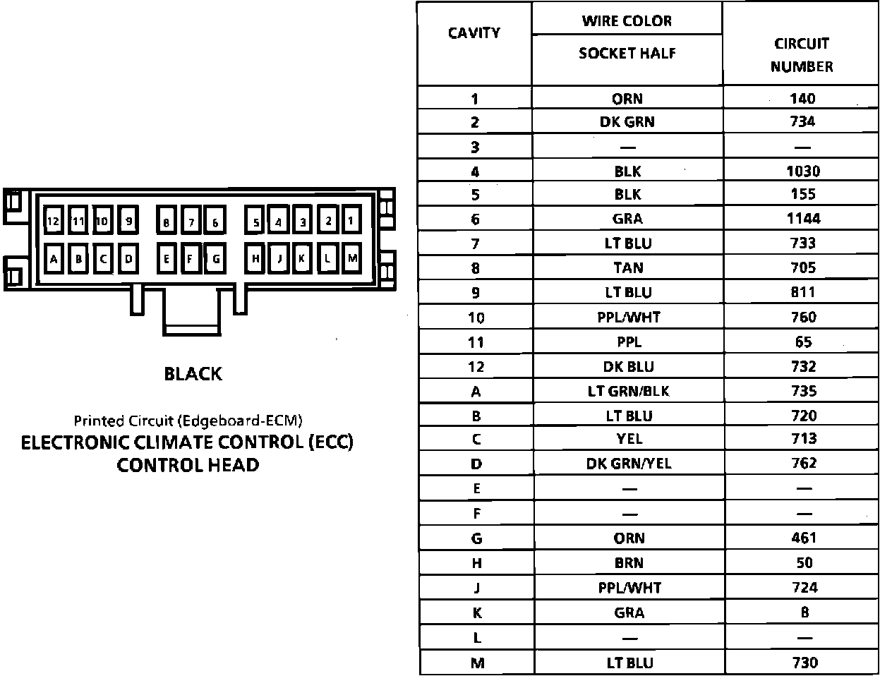Electronic Climate Control (ECC) Control Head Connector Face: