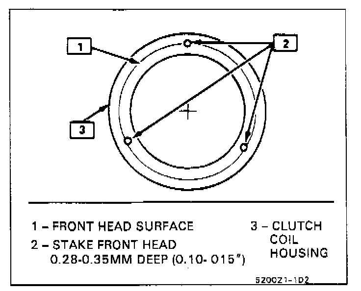 5. When coil is fully seated on the front head, use a 1/8" diameter drift punch and stake the front head at three places 120 degrees apart, to ensure clutch coil remains in position.