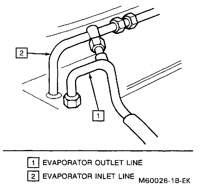 8. Remove evaporator core refrigerant lines. Cap all open fittings to prevent contamination of system.